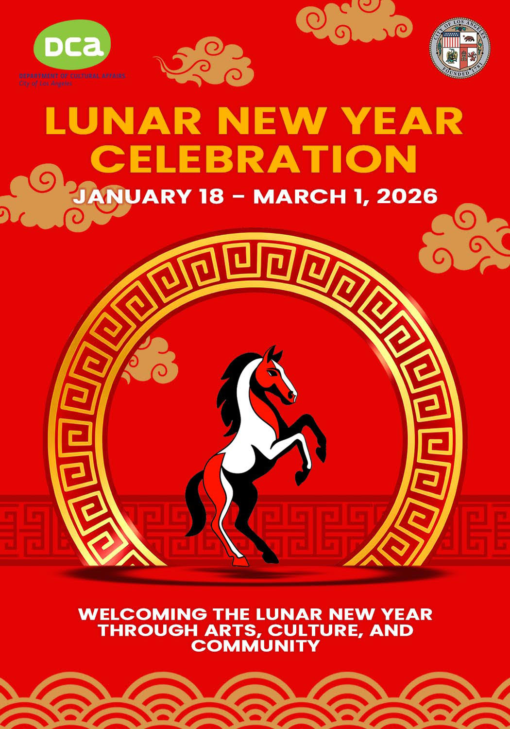 The City of Los Angeles Department of Cultural Affairs (DCA), Performing Arts Division, presents the fourth annual Lunar New Year Celebration, featuring activities taking place from January 18 to March 1, 2026. This year celebrates the Year of the Horse, and festivities include Chinese, Korean, and Vietnamese culturally-specific dance, food, and arts festivals, film screenings, live theater, street fairs, parades, and storytelling. Lunar New Year celebrations mark renewal, continuity, and collective identity across many Asian cultures and diasporas. DCA brings these programs to the public through close collaboration with community partners to highlight the diversity of traditions observed in Los Angeles. Bring your family and friends to enjoy these joyous community gatherings. All events are free and open to the public.