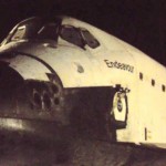 It was 7 PM and the soft parade was still proceeding at a glacial pace—frequently halted by many last minute obstructions. Lampposts were quickly dismantled and trees cut just ahead of the creeping Orbiter. Actually, glaciers move faster these days but it was truly worth waiting for. When Endeavour finally came into view a thunderous roar went up from the crowd which was sustained for half an hour. The procession was led by the Crenshaw High School Marching Band and Majorettes. When Endeavour stopped at Crenshaw and King —more than five hours late—the spectacle was amazing. It was New Year’s Eve, 4th of July and Election Night—all rolled into one!