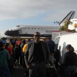 Ivor’s Endeavour Encounter in his own words. I did see Endeavour earlier on Friday in Inglewood as it moved out from LAX—LA’s Airport where the sight of a space ship isn’t too much of a stretch. What I wanted to see was a real space ship plopped right in the middle of a real city—in a real neighborhood like the one near me at the foot of Baldwin Hills. I’ve had the opportunity to see all the Orbiters up close over the years except for Challenger but this one- in this setting would be something really special. The incongruity of a shuttle in the city would be historic!